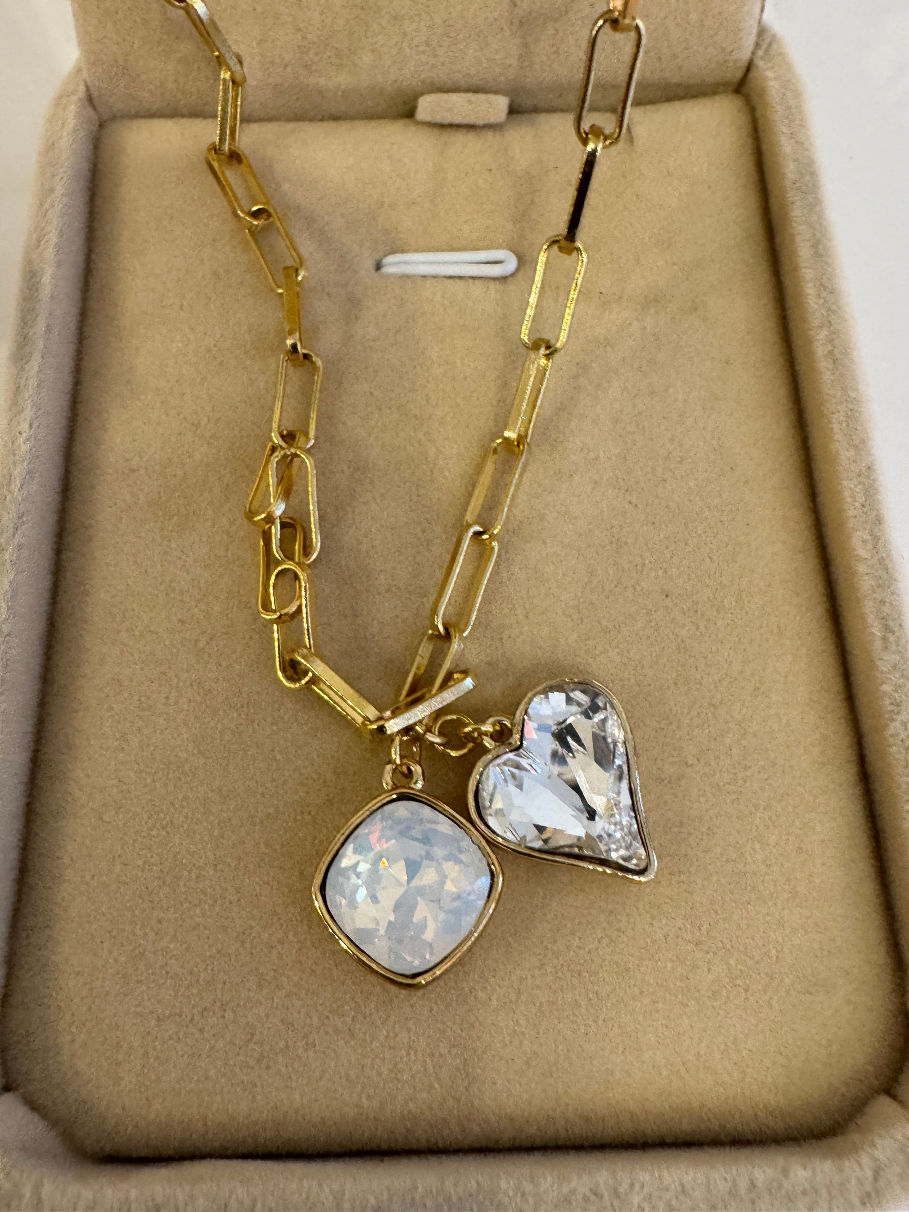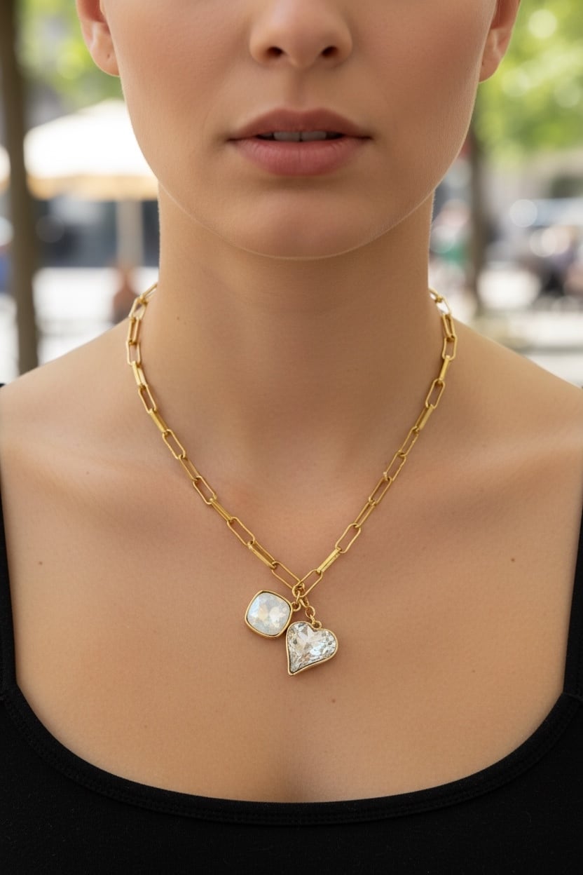 クリスタルのクリスタルカラーを使用した、エレガントなハートのネックレス