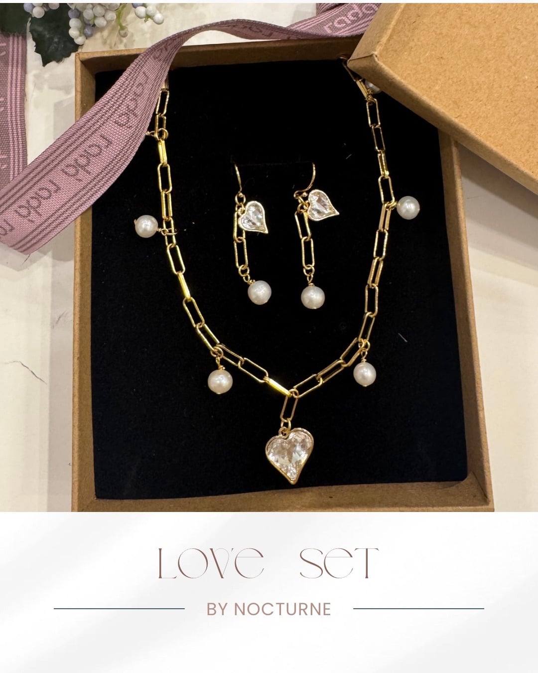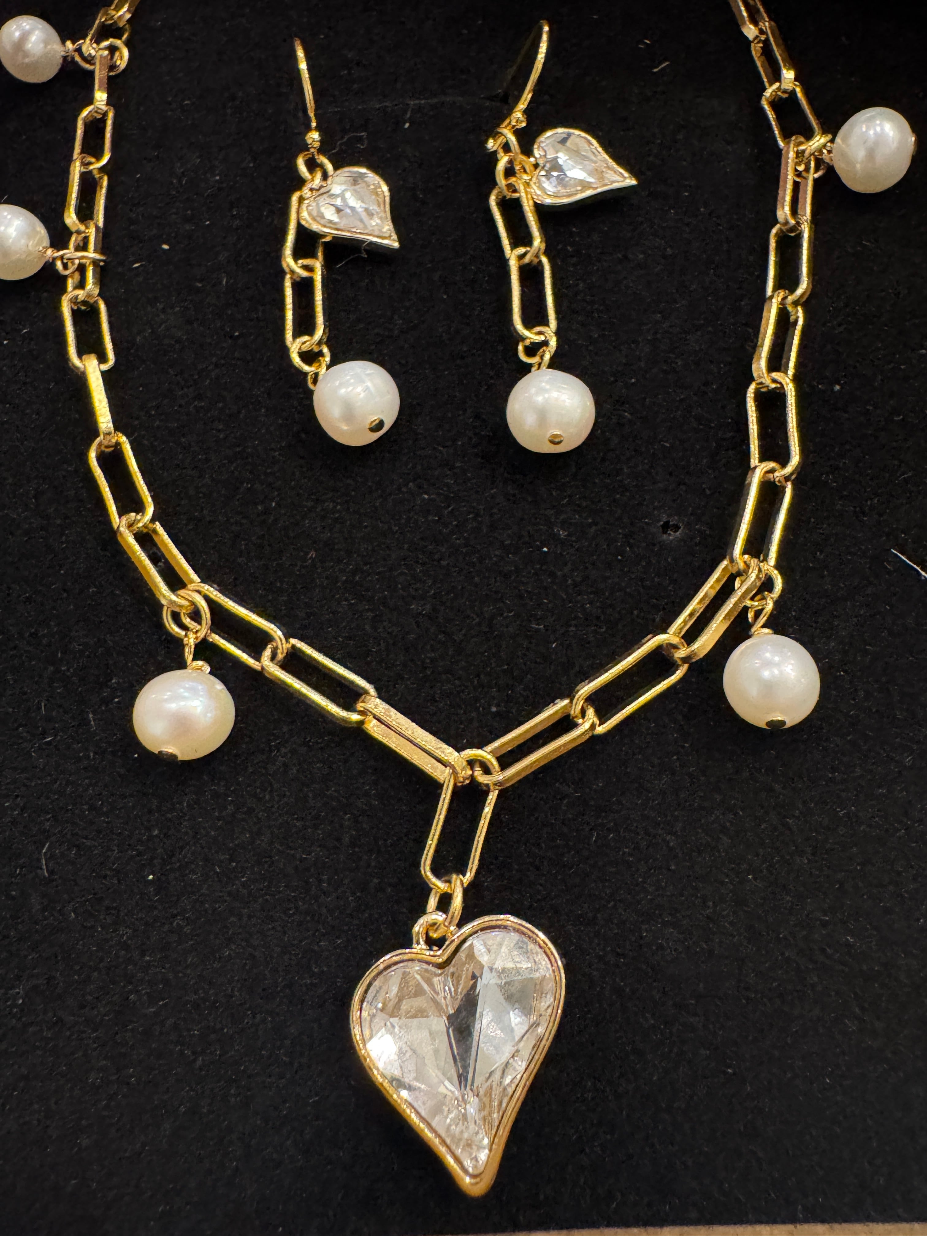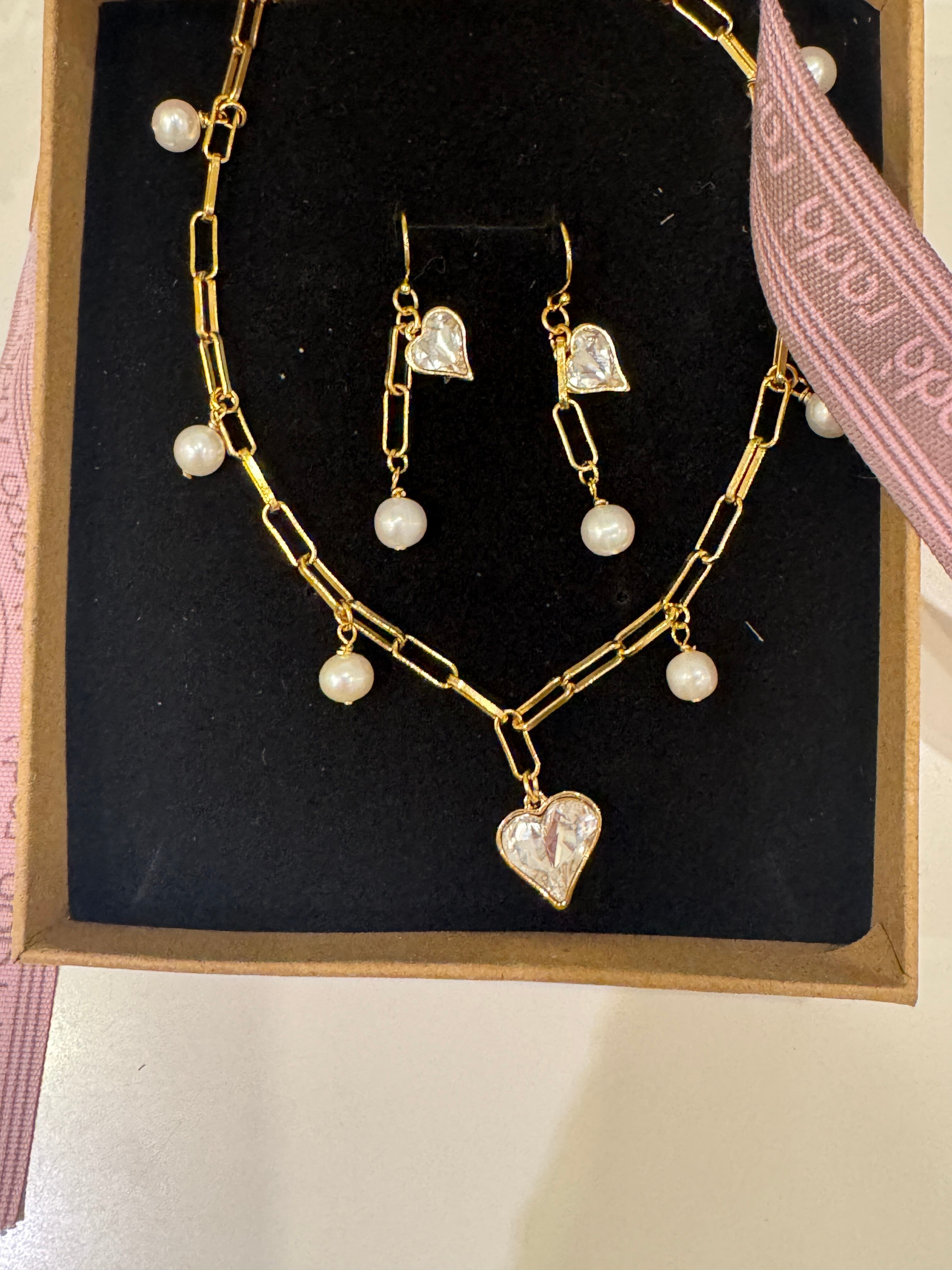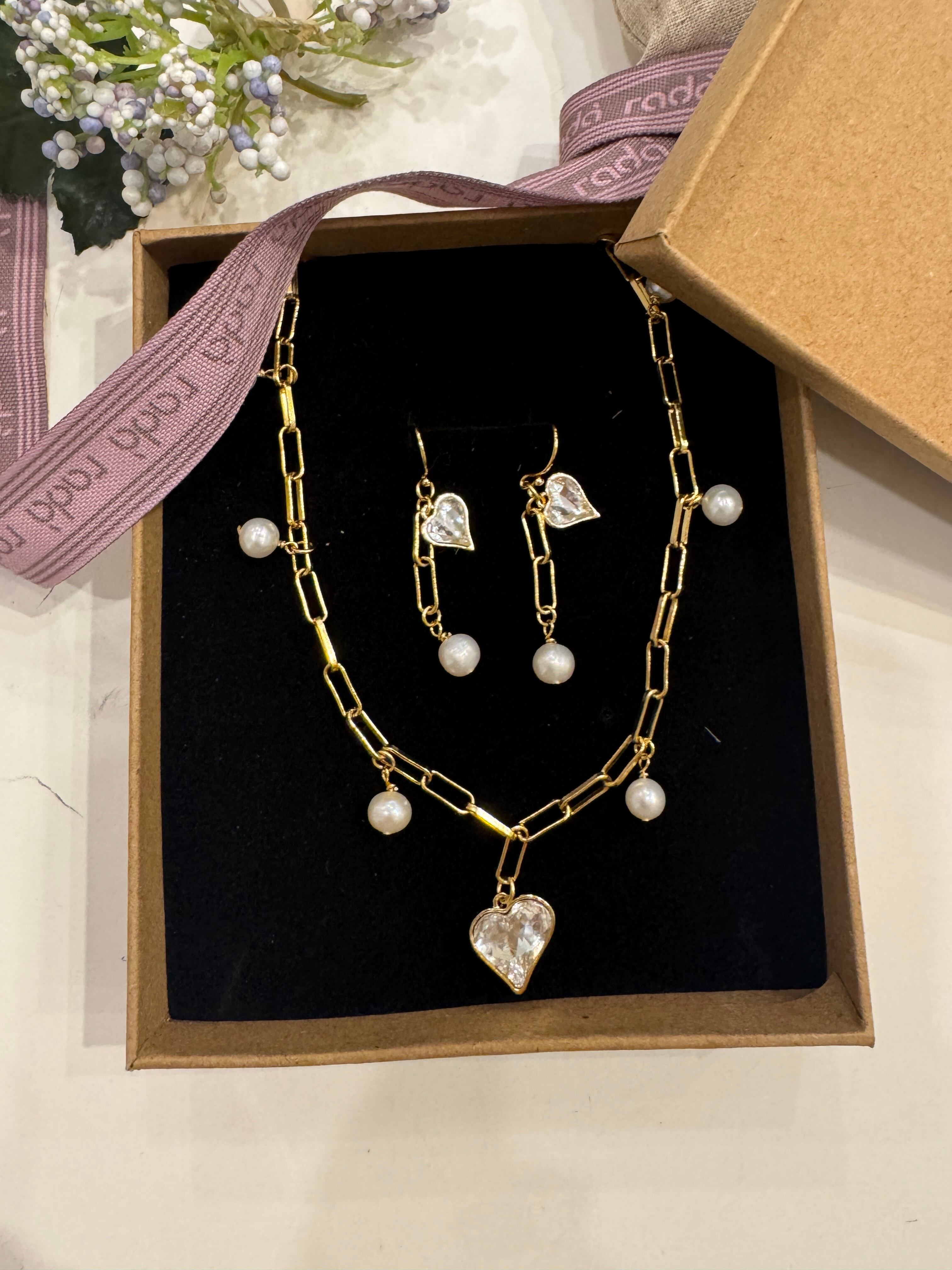 クリスタルハートセット ハートコレクション-NOCTURNE(ノクチューン) クリスタルと パール エレガントジュエリー ネックレスとピアス ギフト