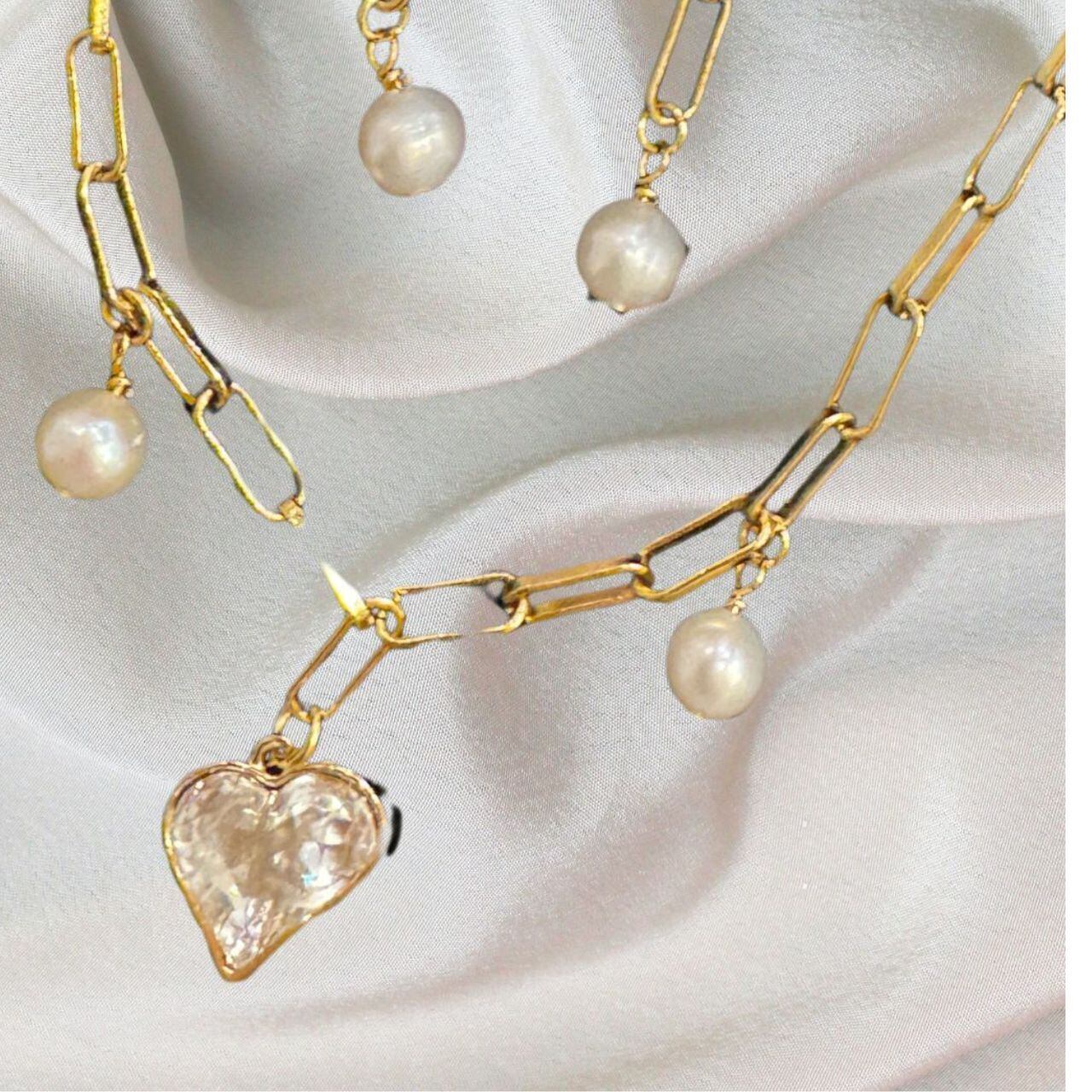 艶やかなクリスタルと上品なパールを使用したネックレスとピアスのラブセット。ピアスはご希望の場合にはイヤリングに変更できます